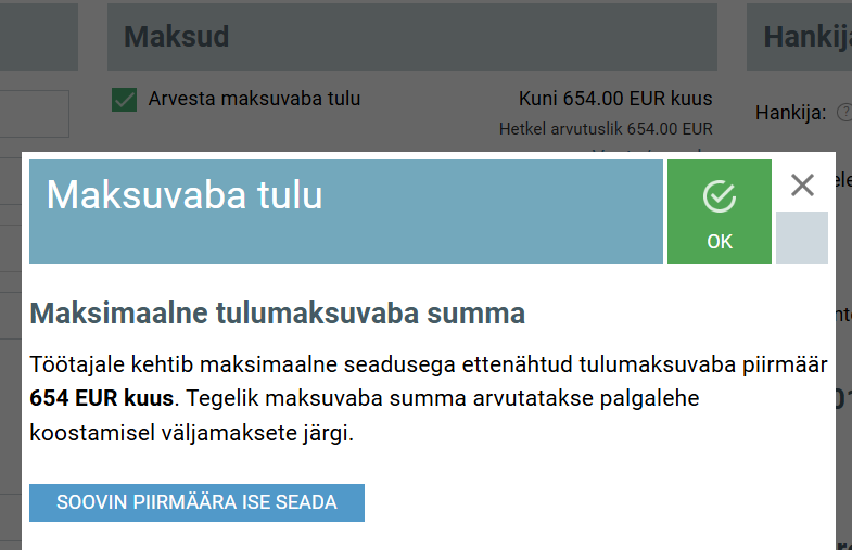- Märkida linnuke valiku ‘Arvesta maksuvaba tulu’ ette