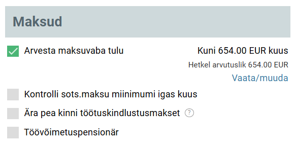 - ‘Arvesta maksuvaba tulu’ valiku juures klikata ‘Vaata/muuda’