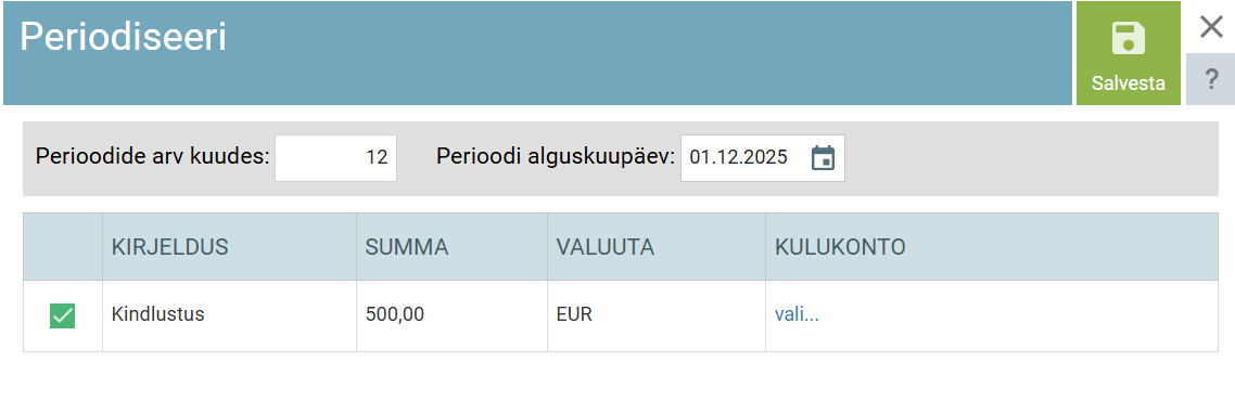 Kui seadistused on tehtud, tuleb periodiseerimine salvestada ning selle peale luuakse periodiseerimise read vastavalt seadistustele.